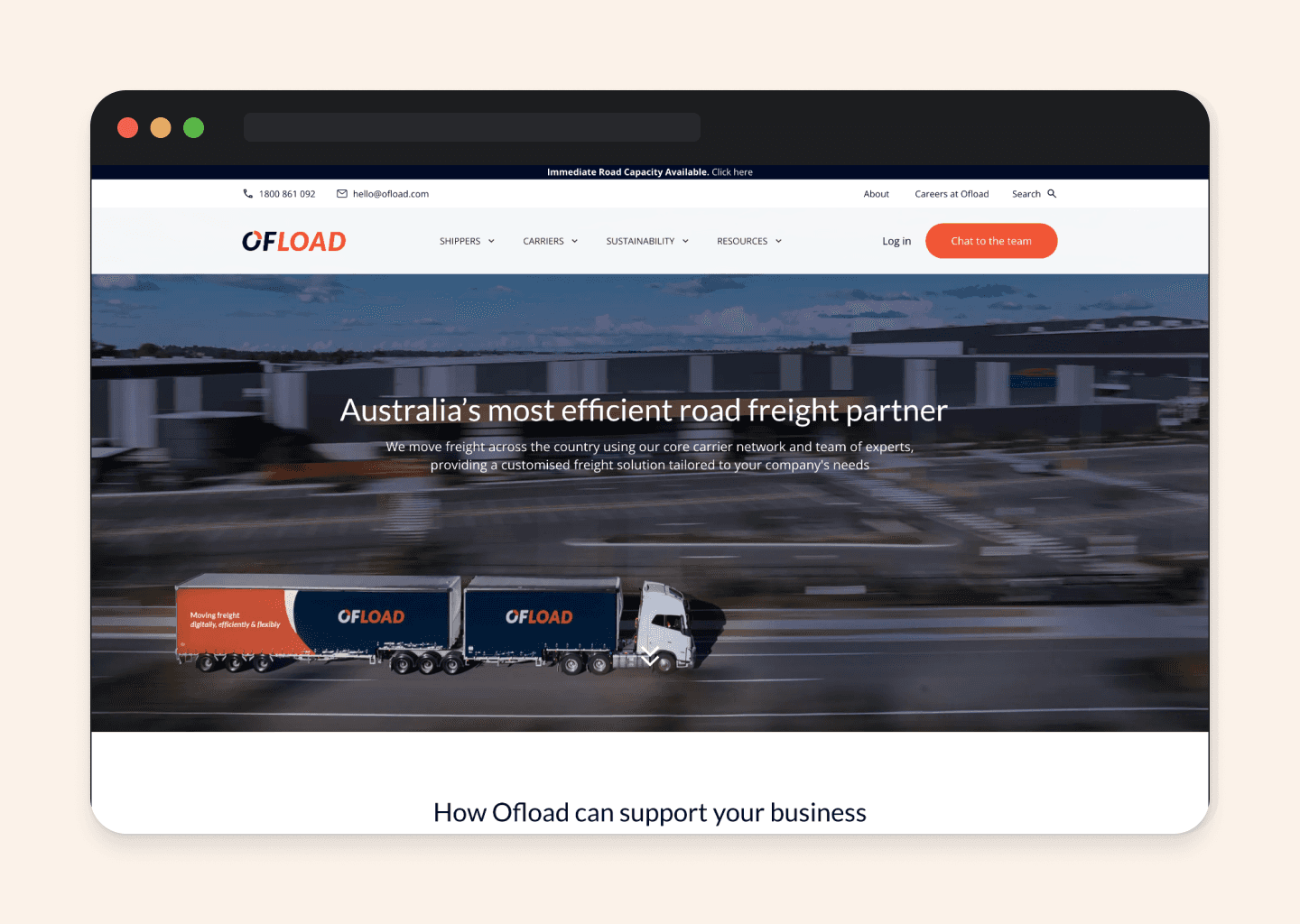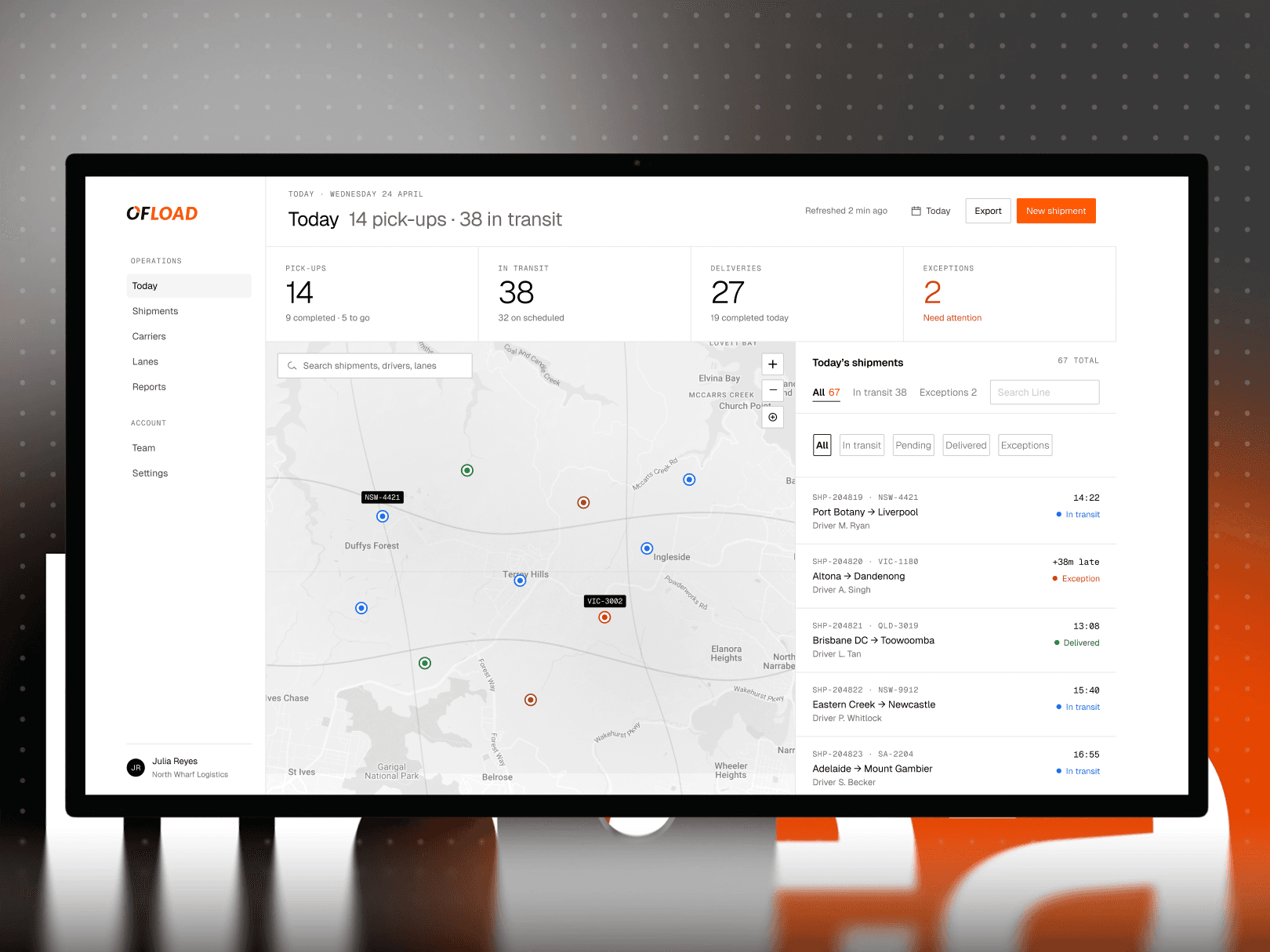 Ofload is a road freight management platform connecting large shippers with carriers across Australia. Shippers use it to book loads, track costs, and manage fulfilment at scale. By mid-2023, the platform had visibility gaps that were hurting its core promise: shippers could book a shipment in minutes, but couldn't see where it was once it left the warehouse.